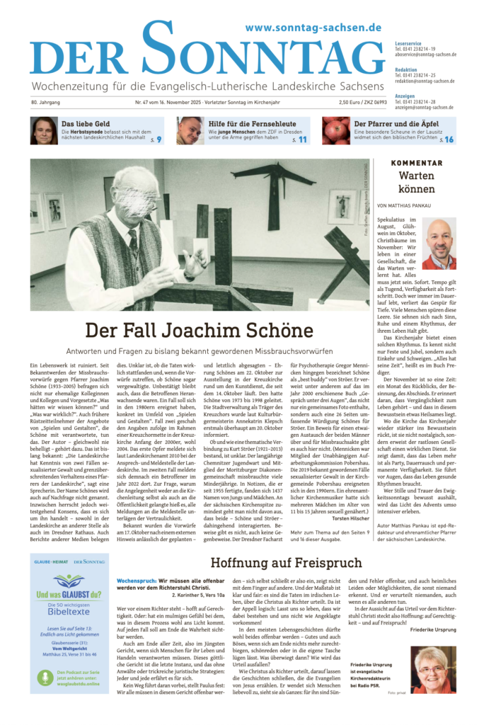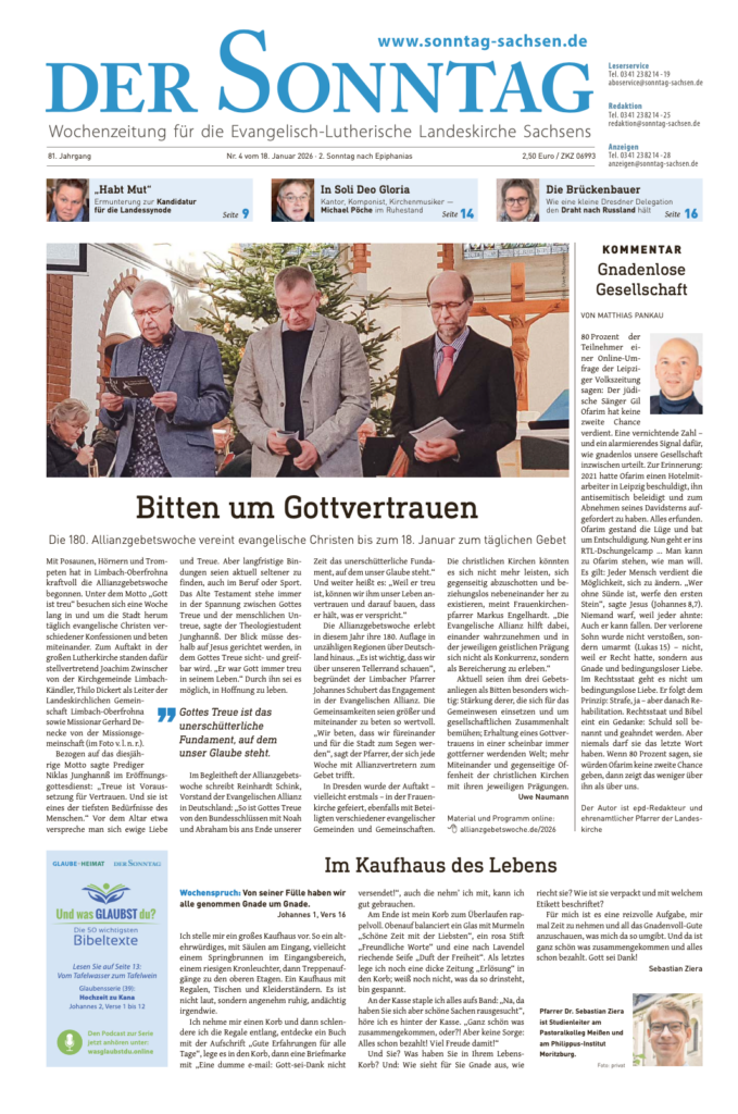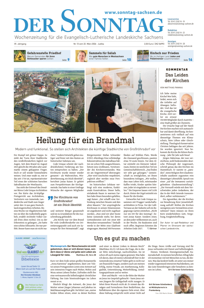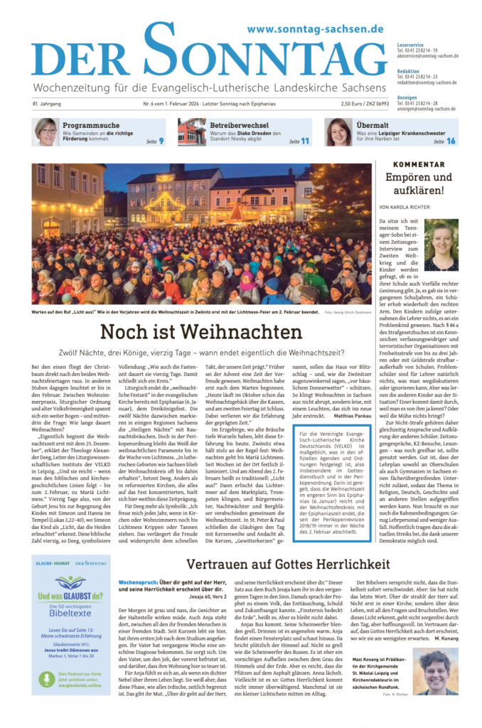 »Der Sonntag« ist die Wochenzeitung für die Evangelisch-Lutherische Landeskirche Sachsens. Herausgeber ist der Evangelische Medienverband in Sachsen.